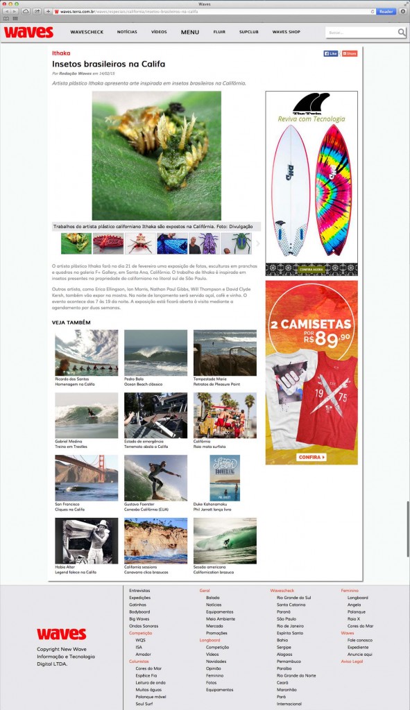 This years Valentine’s Day Ithaka got published on Waves website regarding his next event at the F+ Gallery, in Santa Ana, California, this February 21st. The event will focusses on Ithaka’s newest art work, the “Aliens Of AkahtiLândia” series, from 7 to 10pm, showing 7 of his giant “surfboard/bug sculptures”, some of his mixed-media paintings and photographs of the […]