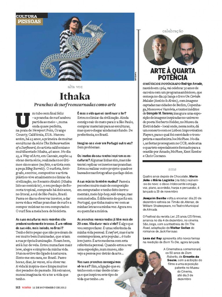 The culture themed Portuguese magazine Visão recently published Ithaka’s most emblematic art work, highlighting his influences through music and nature. Read more directly on Visão website at visao.sapo.pt/noticias/ and visao.sapo.pt/blog/ or through the surfers agent at wayofarts.com/press/ and wayofarts.com/ithaka/